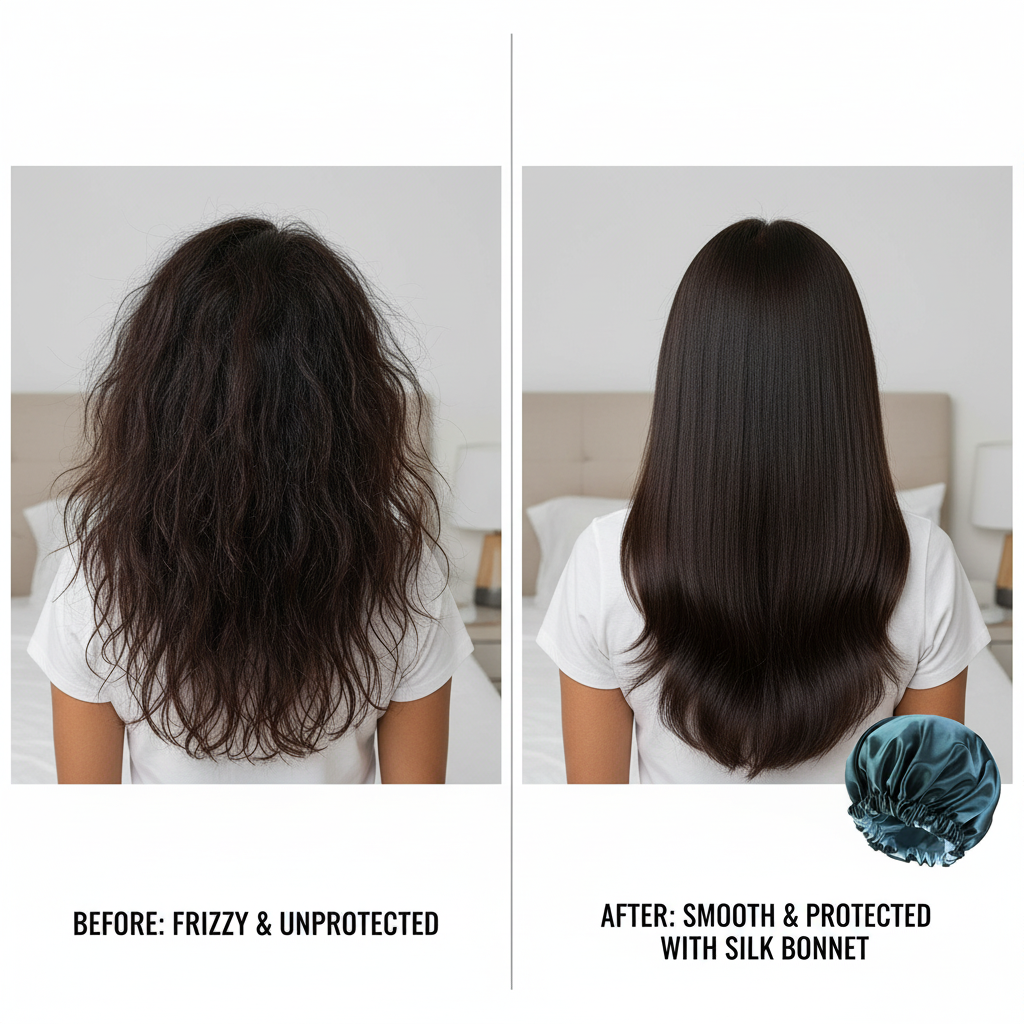 Notre bonnet en satin luxueux élimine les frisottis, préserve l'hydratation et protège votre coiffure toute la nuit pour un réveil beauté garanti.