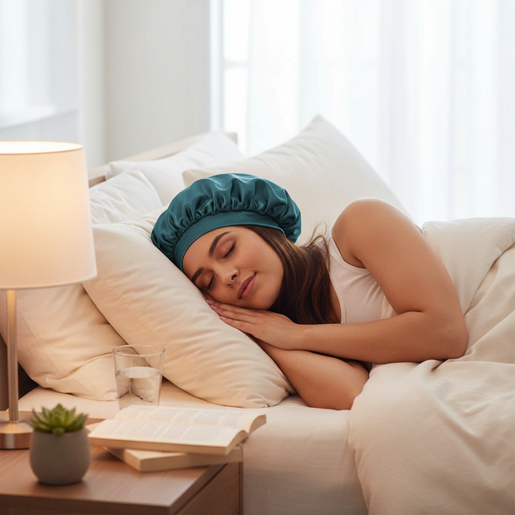 Le bonnet satin qui transforme vos nuits en soin capillaire